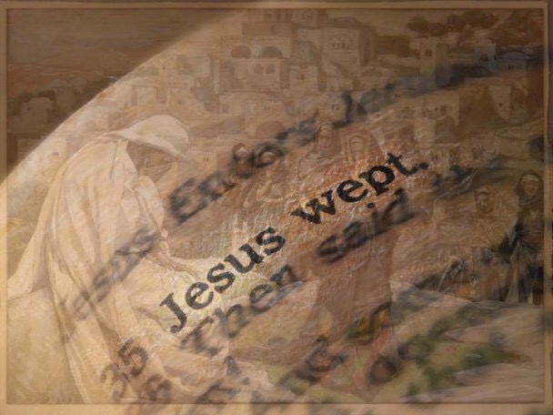This is the smallest verse in Scrupture, and yet it is a powerful one. Thoughts and meditation on this verse can go so many directions. Two initial thoughts come to mind. The first is the obvious and primary application. This is that Jesus can be touched with our infirmities, and is willing to bear our grief. He loves and is compassionate. Thank God for this in our times of sorrow.
